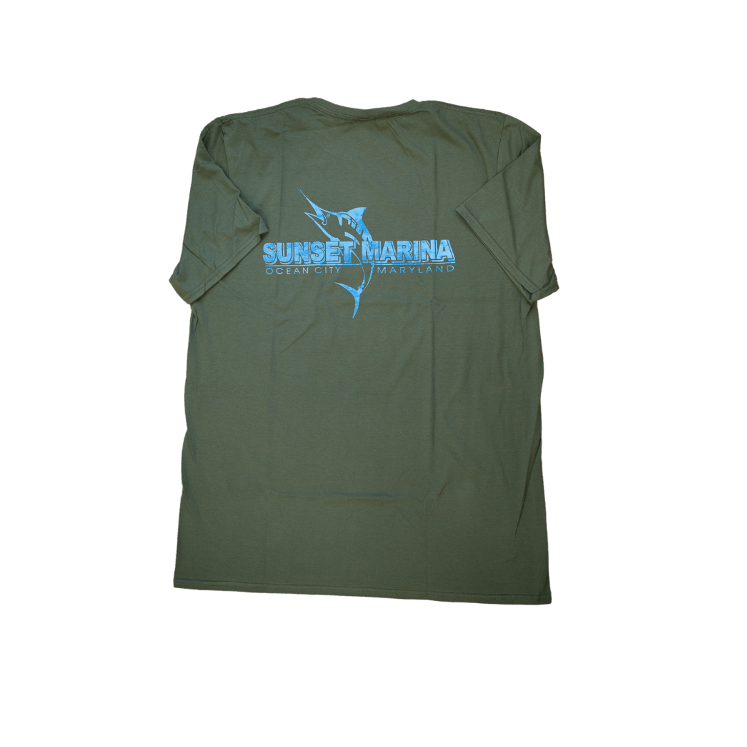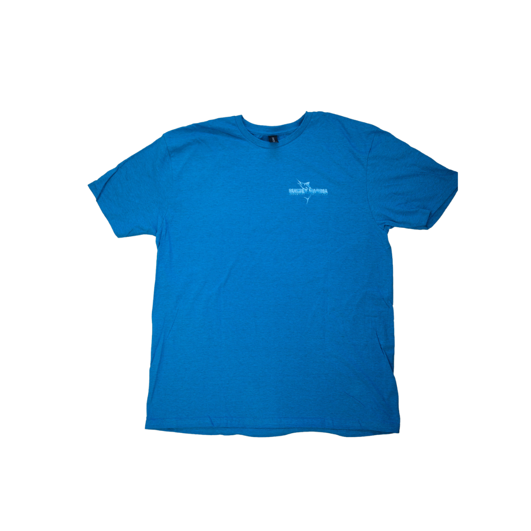 A soft and incredibly comfortable basic tee featuring the classic Sunset Marina logo. Features a fun play on the classic Sunset Marina Logo that makes you feel like you are out there on the water. This design is featured on the back of the shirt and on the front left in a smaller version. Available in 4 colors options.