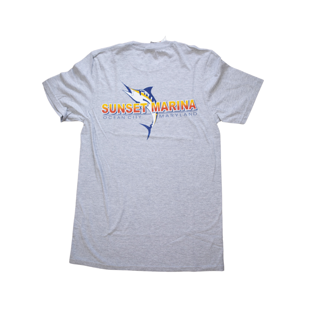 Classic Sunset Marina logo printed on a super comfortable soft style Tee. Logo on front left and in full color on back.